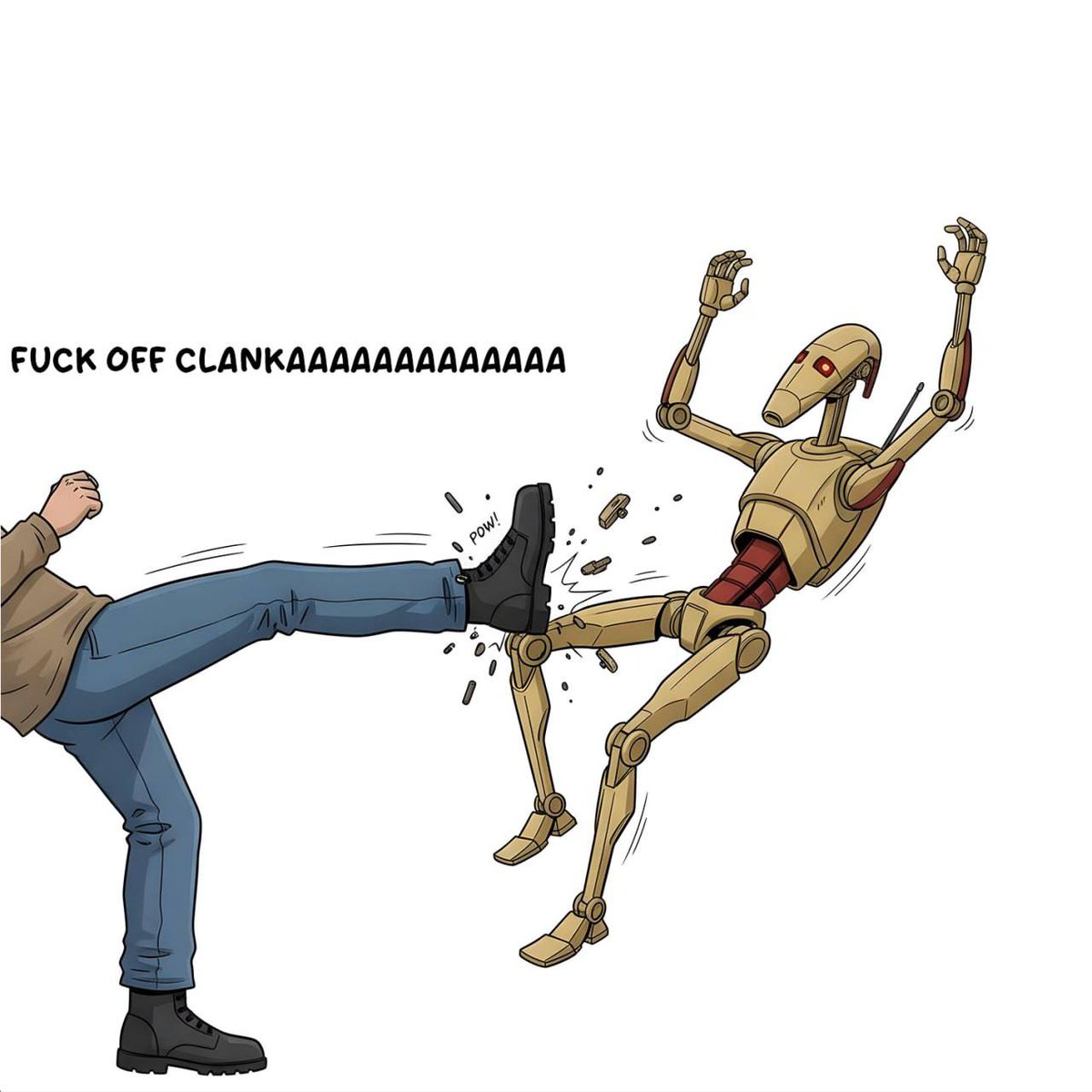 잘 모르는 분들을 위해, "clanker"는 스타워즈 전승에서 유래한 용어로, 클론 병사가 배틀 드로이드를 비하할 때 쓰던 속어입니다 — 요컨대 로봇을 빈정대는 표현이죠. 오늘날 이 단어는 챗봇, 자율주행차, 로봇 동반자 같은 AI·로봇 관련 모든 것을 비꼬거나 유머러스하게 지칭하는 폭넓은 밈으로 진화하고 있습니다. AI가 일상에 더 깊게 스며들수록 — 특히 TikTok과 X 같은 플랫폼에서 Gen Z 사이에서 — 이 속어의 확산 가능성은 커집니다.